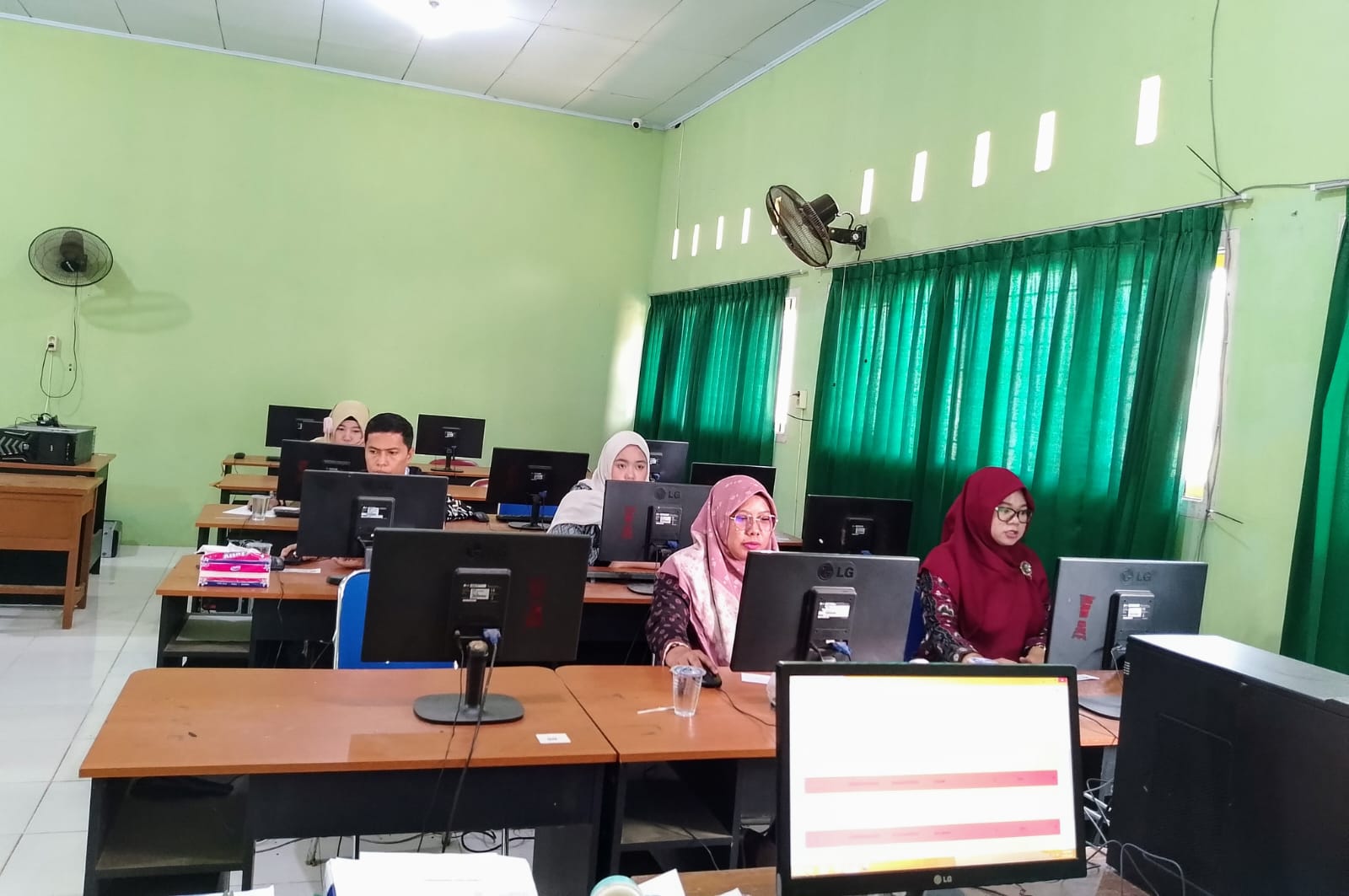 Para guru tampak tenang melaksanakan survei secara online di ruang Multimedia MAN 1 Kota Jambi dengan menjawab 112 pertanyaan. Adapun indikator penilaian terkait fasilitas madrasah, kenyamanan ruang belajar, serta interaksi antara guru dan siswa. Selain itu, mereka juga diajak untuk memberikan masukan tentang hal-hal yang perlu diperbaiki agar proses belajar mengajar dapat berlangsung lebih efektif.