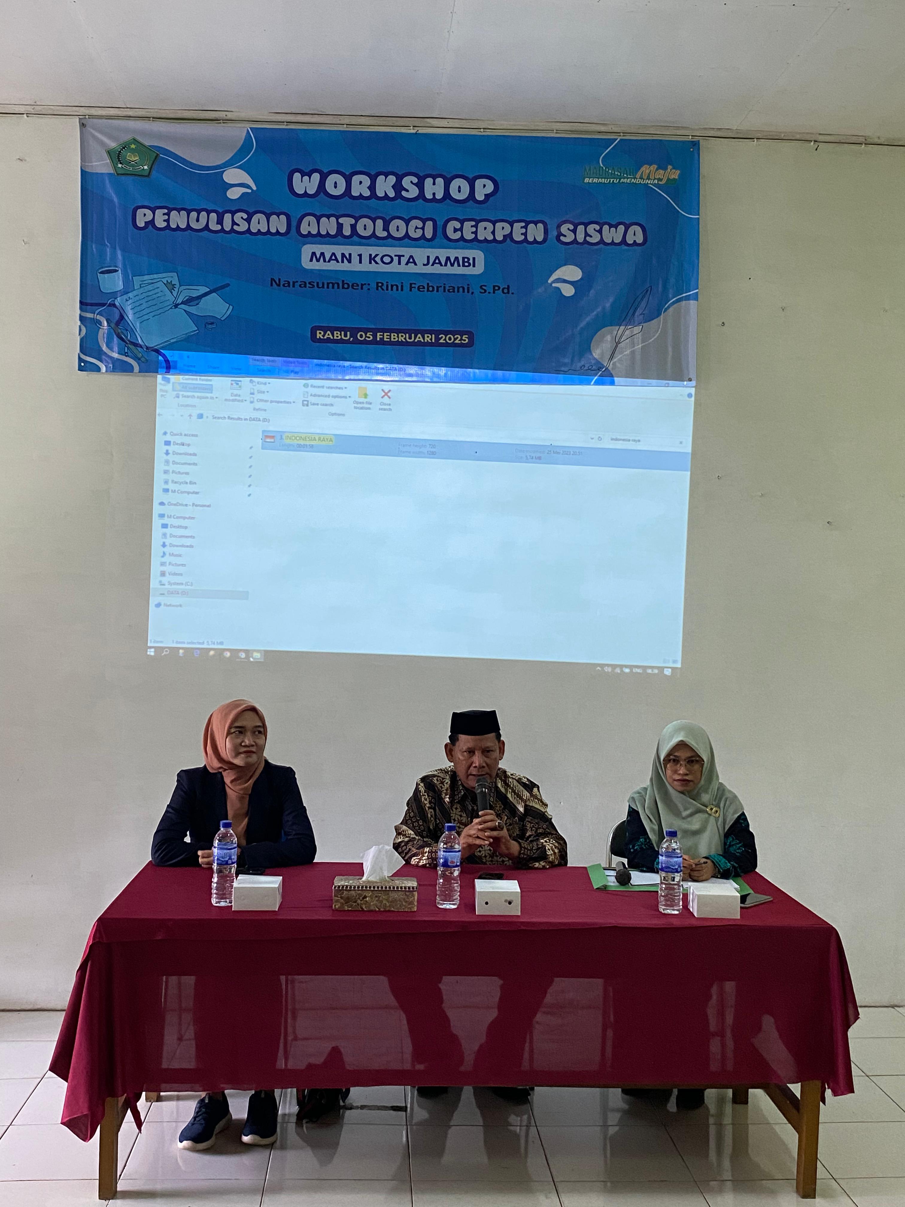Sebagai langkah awal, siswa diberikan <i>workshop</i> penulisan antologi cerpen dengan harapan dapat menambah pengetahuan dan pengalaman dalam menulis. Kegiatan ini dilaksanakan pada 05 Februari 2024, dimulai pukul 08.30 sampai 12.00 WIB. Kegiatan langsung dibuka oleh Kepala MAN 1 Kota Jambi. Beliau mendukung penuh dan berharap kegiatan seperti ini nantinya dapat menjadi program rutin. Beliau juga berpesan agar siswa dapat berdaya melalui tulisan.