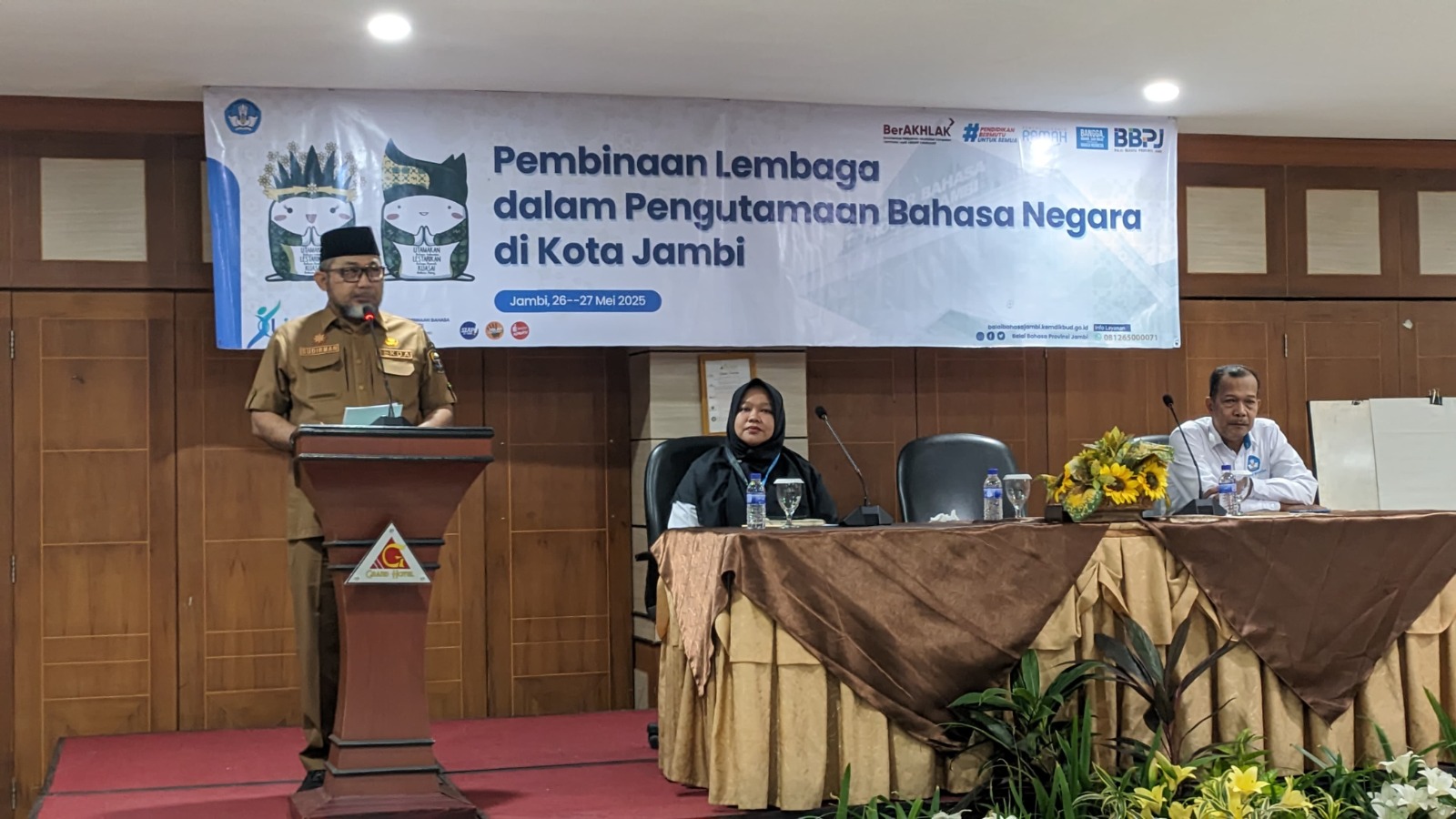 Kegiatan yang berlangsung di Hotel Grand Makmur ini dibuka langsung oleh Sekretaris Daerah (Sekda) Provinsi Jambi, Bapak Dr. H. Sudirman, S.H., M.H. Dalam sambutannya, beliau mengungkapkan kebanggaannya karena Bahasa Indonesia telah disahkan menjadi bahasa internasional ke-10 oleh UNESCO di lembaga PBB. Bapak Sudirman pun mengajak masyarakat untuk lebih bangga dan aktif menggunakan Bahasa Indonesia. Melalui kegiatan ini, beliau berharap masyarakat semakin memahami dan antusias menggunakan Bahasa Indonesia di ruang publik.