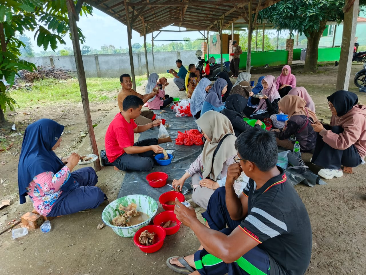 Seluruh masyarakat madrasah terlibat aktif dalam kegiatan hari itu, mulai dari proses penyembelihan, pemotongan, pembagian daging kurban, hingga diakhiri dengan makan sop tulang bersama di halaman madrasah. Kebersamaan dan semangat gotong royong tampak jelas dalam setiap tahapan kegiatan.