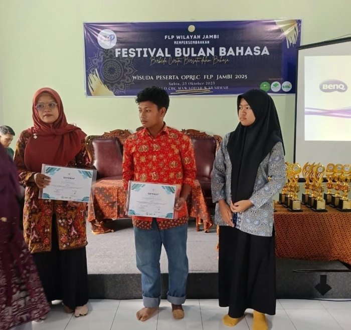 (Humas). MAN 1 Kota Jambi berhasil menorehkan prestasi dalam lomba menulis puisi dan cerpen yang diselenggarakan oleh Forum Lingkar Pena (FLP) Wilayah Jambi. Kegiatan ini merupakan bagian dari Festival Bulan Bahasa yang rutin digelar setiap tahun, bertujuan untuk meningkatkan minat literasi dan kreativitas siswa di bidang sastra.